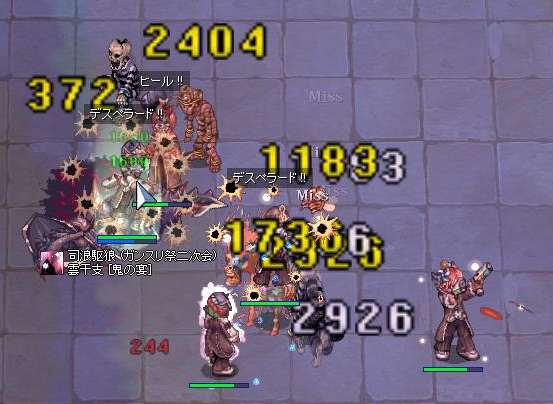 最初に俺が突入したんですができるだけ多くのタゲをとろうと前にですぎました。デスペラ前に余計に一発もらっちゃいましたね。