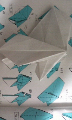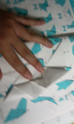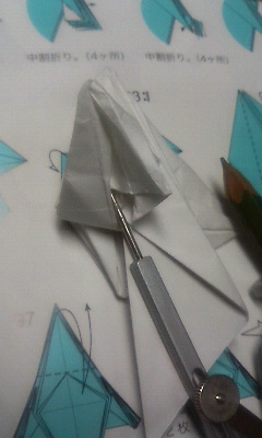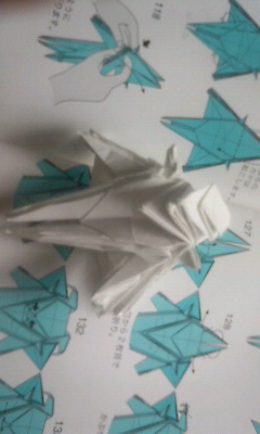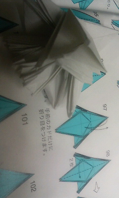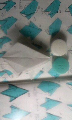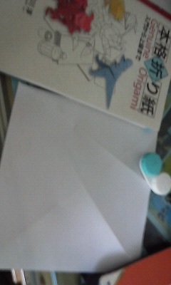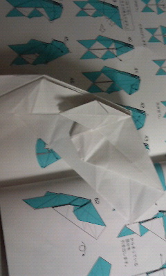 20分経過。いや、別にサボってるわけじゃ・・・折り図の見方もよくわかっていないのでどこをどう折るのかの解読に無意味に時間がかかっています。