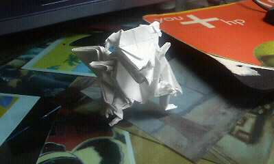 もはや完全に立体と化しております。折り紙ってこんな硬くて重たそうになるもんだっけ