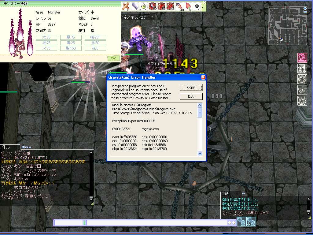 最近センチピード幼虫や血騎士でエラーがでるとは聞いていたがすっかり忘れていたw