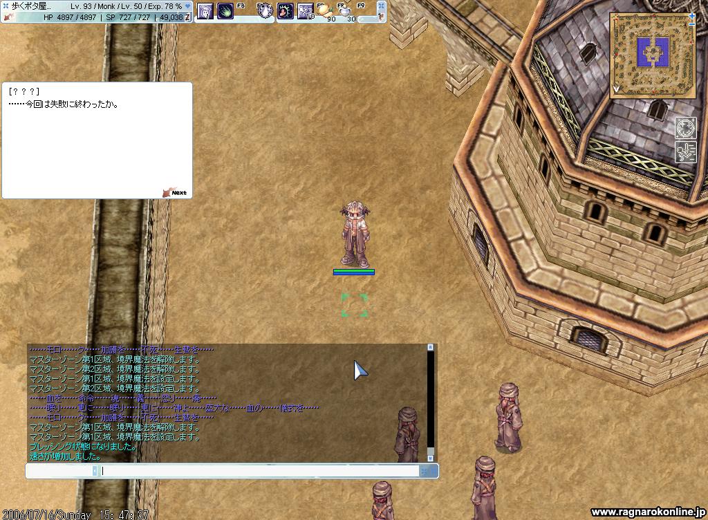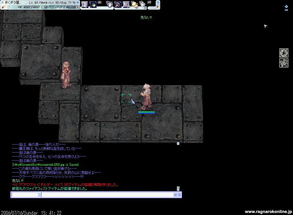 共に周りのMOBをどかしておかないとメッセージでてるときに殴られるとやばいです。天使系列はモンクソロじゃ飛ぶ暇も無くぬっ殺されます。