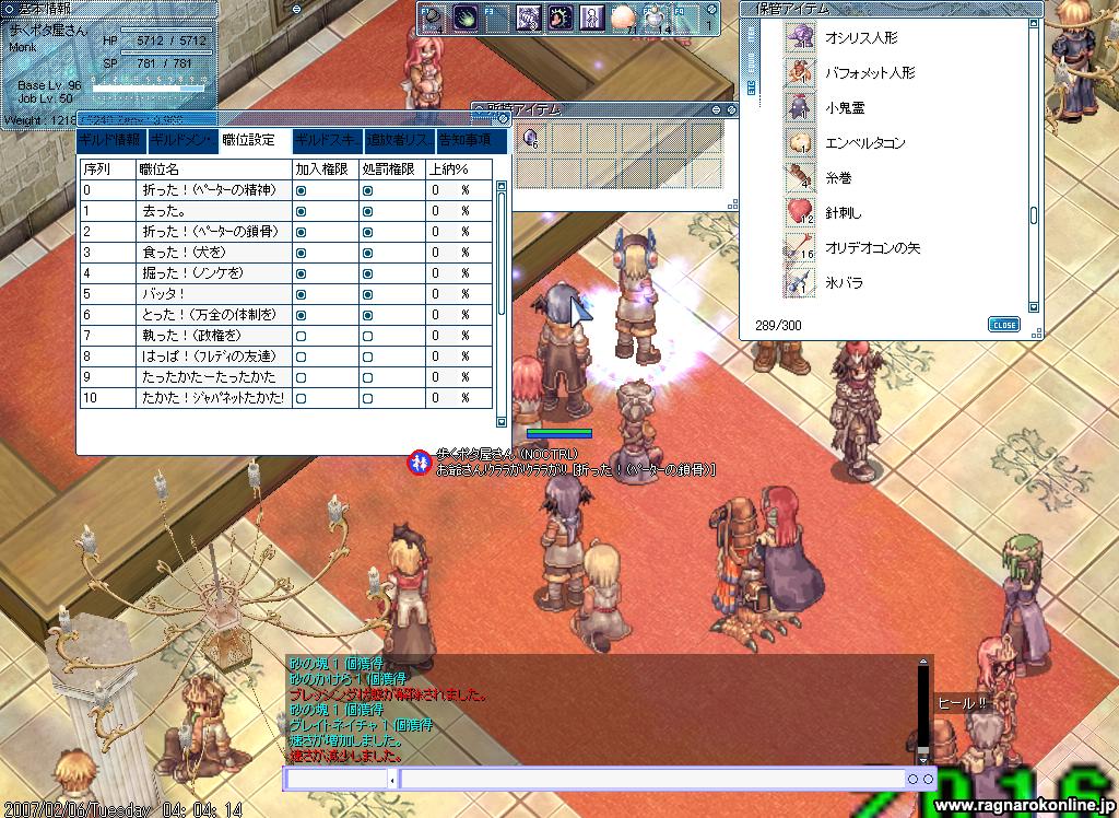 課金アイテムのキラキラスティック実装後、06年12月のGvネタの為に残影を取得。発勁は5。