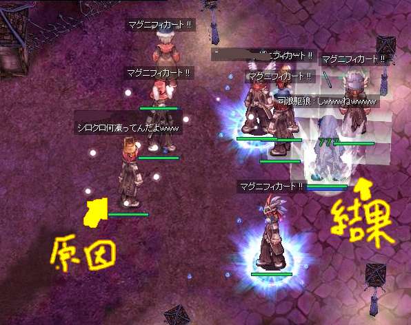 グレネードで凍結の実験したり、カンで撃ったデスペラードが綺麗にクロークしてたアサにHITしたり、ポタ屋だしてdex20でパピヨン込みの詠唱速度に絶望してみたりしてました。